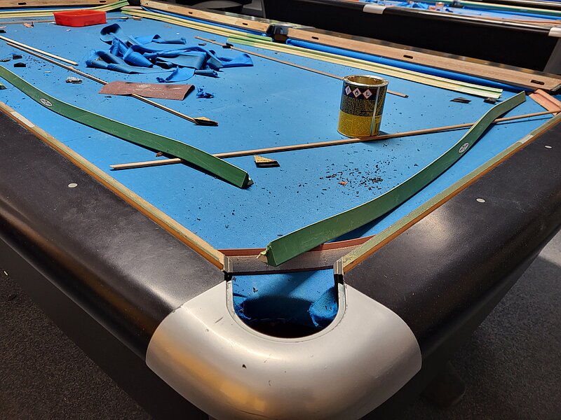 Etwa einmal im Jahr ist es wieder so weit. Dann werden die Tische neu bezogen. Das kostet ein ganz nettes Sümmchen und dauert normalerweise 2 Tage.