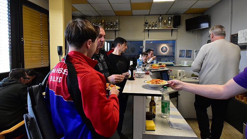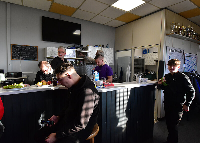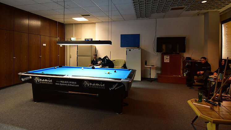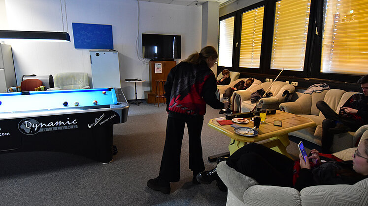 In unserer Lounge wurde sich an Tisch 9 warmgespielt, entspannt etwas gegessen und auf dem Sofa entspannt.