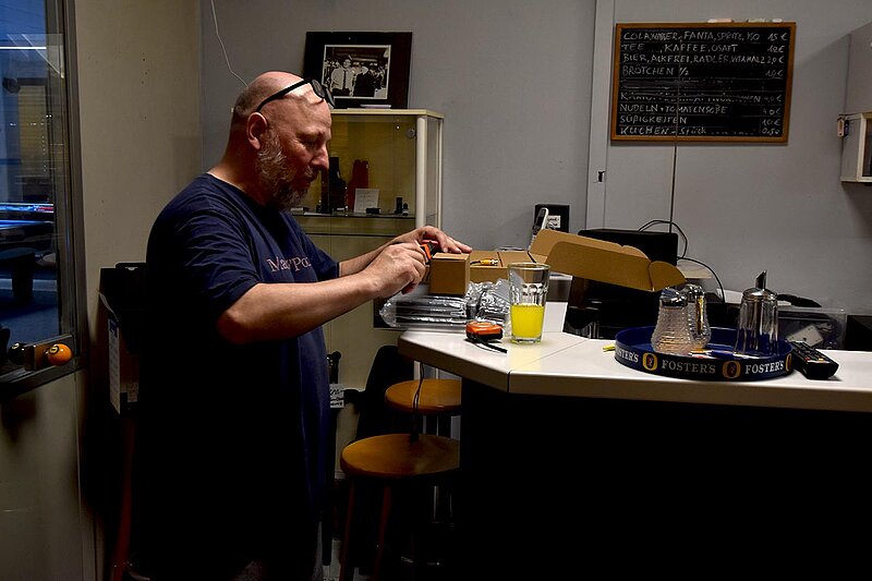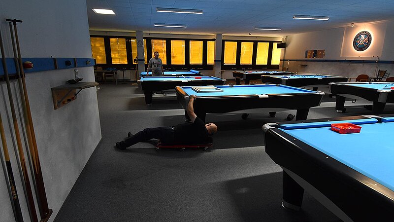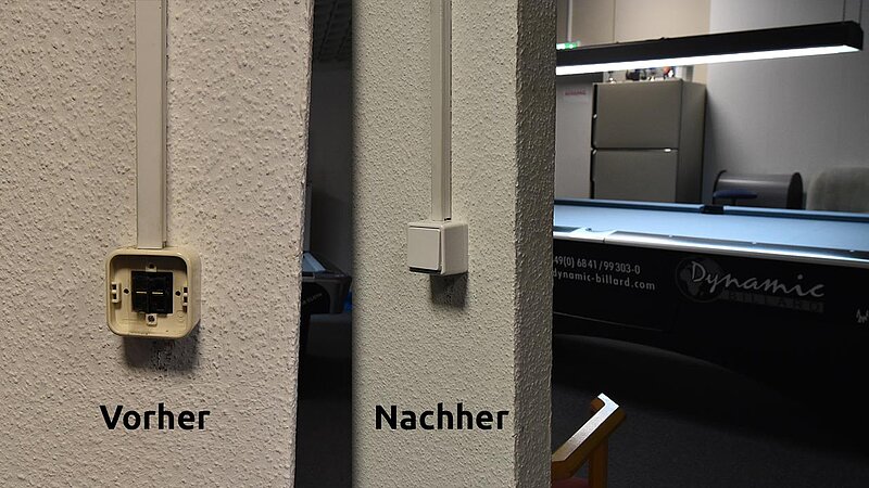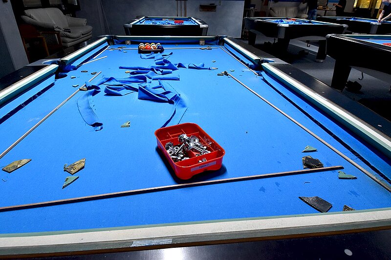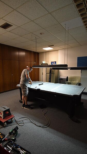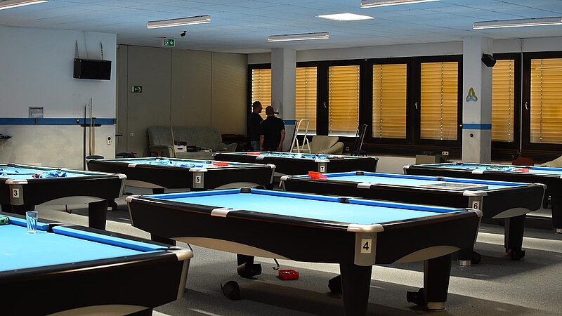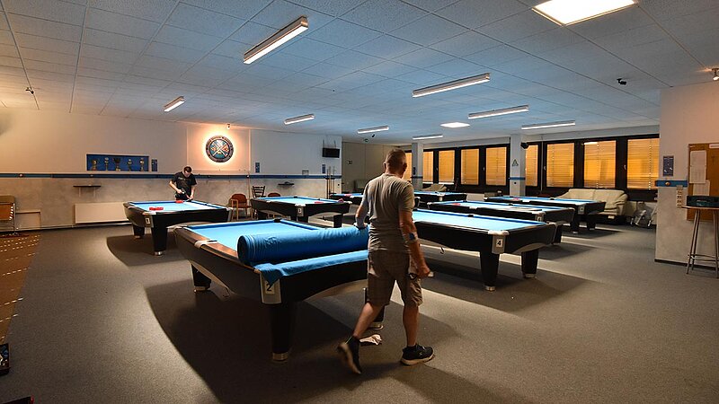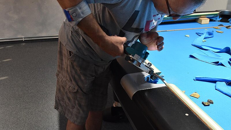 Im Verein werden unsere Tische entsprechend beansprucht und so ist regelmäßig nötig, das Tuch zu wechseln. 2025 kehren wir zum Z9 zurück, das für uns Billard-Sander aufzieht. Und so ist unser Verein mal wieder für 2 Tage Baustelle. Die Gelegenheit, auch gleich noch Tablets an den Tischen zu anzubringen.